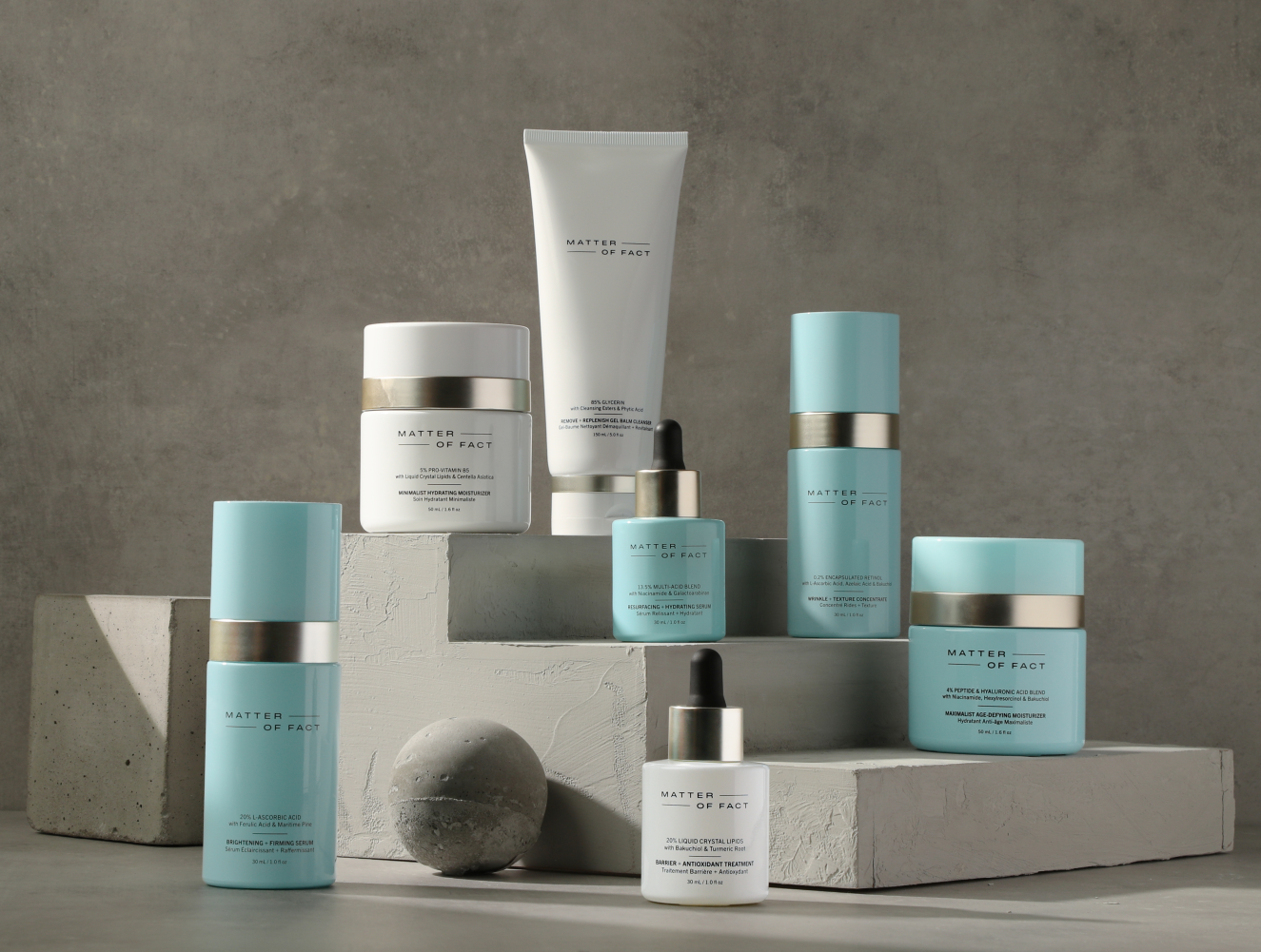 A Matter of Fact neve („ténykérdés”) is utal arra, hogy a márka az őszinteséget és átláthatóságot helyezi előtérbe. Célja olyan termékeket alkotni, amelyek valóban működnek, de közben élvezetes a használatuk is. Termékeik a jól bevált, kutatott hatóanyagok szabadalmaztatott, egyedi kombinációira épülnek. Kombinált terápiát (combination therapy) alkalmaznak, azaz nem egymás alternatíváiként, hanem együtt alkalmazott, jól kombinált hatóanyagokat kínálnak. A márka több, mint 10 olyan technológiát fejlesztett, amelyek szabadalmi védelem alatt állnak, hogy a hatóanyagokat stabilan és hatékonyan tudják bejuttatni a bőrbe.